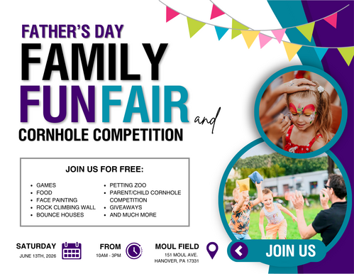 Family Fun Fairs are outreaches that seek to partner local churches, non-profits, and businesses in order to host events that strengthen and build that community and its people. This coming summer, we are once again planning to host an event in the Hanover area . This event, or Family Fun Fair as we call it, will create a fun, safe environment where families and individuals can gather, participate in free games and activities, receive a free meal, find resources from local non-profits, hear about God’s great love for them, and have opportunity to win prizes that support and build family. Our hope is to come together as a community and love people well.
